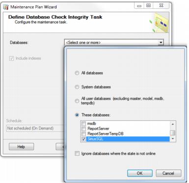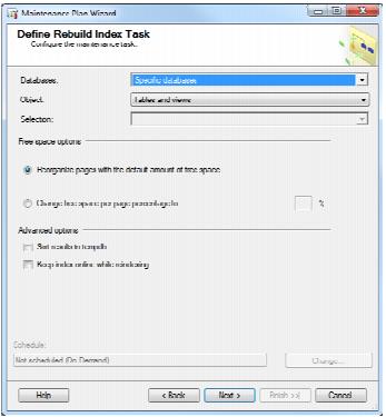 7. You are asked to then define the database for each task that you included within the Maintenance Plan.