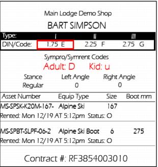 Depending on the rental shop, a label/tag that contains guest and equipment information as well as setting information such as DIN, toe/heel track, stance, etc., can be very useful. This type of label is often used when a rental technician attaches equipment to a Rental form at the TechStation, and then moves to a tech bench to complete the fit-up. Because the rental technician is not standing at the tech station, it is helpful to print the relevant guest and equipment information on some sort of label or tag for use by the technician at the bench. A Graphic layout that includes all of the required information can be configured in SysManager and printed at the TechStation (via RentPrint application).