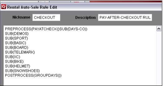 Important: This is the rule you attach to your Rental Contract item (the one processed at Self Entry) within the Begin Rental > Action Specifics.
