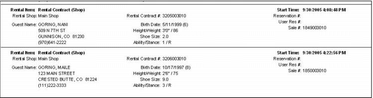 Another useful tool when preparing for next-day arrivals is the Rentals Arrival Report. This report can be used to get a general idea of how much traffic to expect for the date and shop specified along with providing specific guest information necessary to pre-set equipment; this can significantly decrease the amount of time required to process groups.