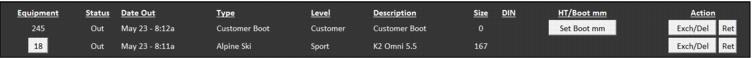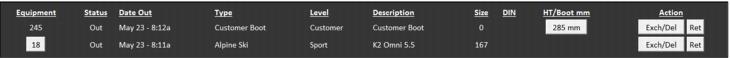 Rentals : Pay-upon-return: System configuration and use : Pay-upon-return: TechStationPC/PPC : Check-out : Customer-owned boots