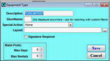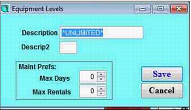 1. Create the necessary Equipment Types and Equipment Levels. (SysManager > Activities > Rental Lists). Typically the Equipment Type describes the object being rented (Locker) and the Equipment Level is generic (N/A).