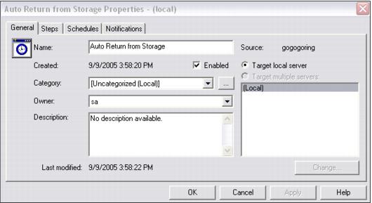 8. The Notifications tab can be left as is or changed any way you want to notify the proper person in case the job executes with errors.