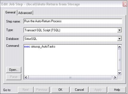 The Auto-Return from Storage functionality activates the process of marking all equipment currently in storage as “returned” to the home location of the equipment at the time of day specified for the rental shop. For example, at the main rental shop all equipment still in storage as of 10:30 AM is automatically returned. This allows guests to drop their skis in storage the night before and leave the equipment there if they decide not to ski the next day. Implementing this functionality involves configuring the rental shop with the appropriate return time and setting up the following SQL Server Agent job.