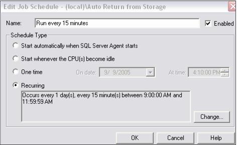 • Click the Change button to edit the schedule if you don’t want to use the default.