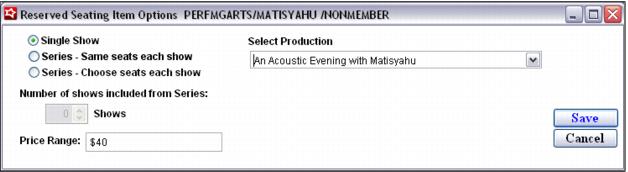 • The Single Show option requires the selection of a Production. The value entered in the Price Range field is displayed to the end-user during the booking process to provide an approximation of how much this particular ticket may cost.