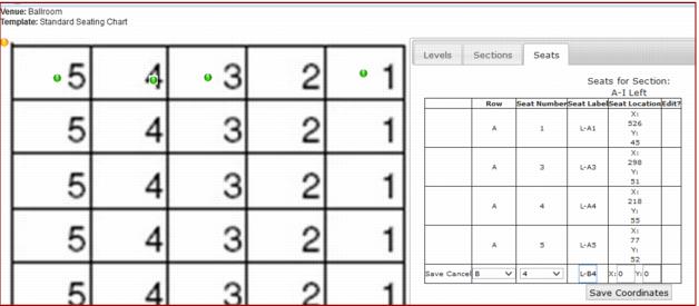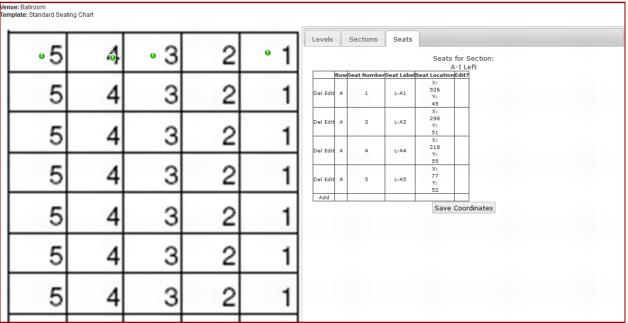 2. When done repositioning, click on the Save Coordinates button to store the current seat locations.