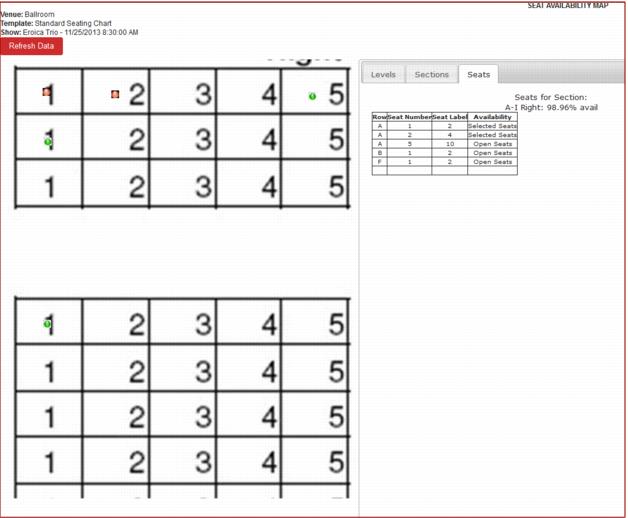 Note: The Refresh Data button above the seat map image allows the admin to refresh the data on the map as needed.