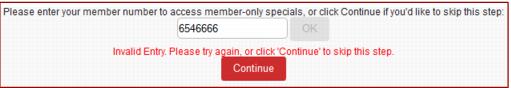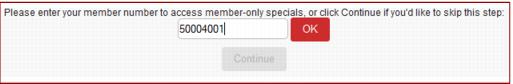 1. Enter the Pass or Member Number in the text box and click OK to validate. If the user would like to continue without entering a pass number, simply leave the text box empty and click Continue.
