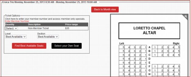 Once a member number has been successfully entered, the, “Enter Member Number” message no longer appears and all ticket types appear and be available for selection as in the screen capture below.
