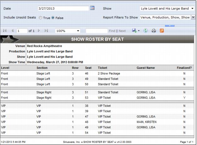 Show Roster by Seat