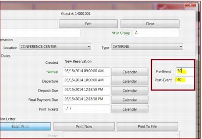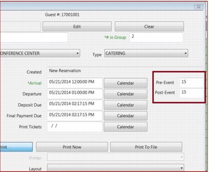 Note: As illustrated in the screen capture above, the two new fields allow an operator to adjust the default times if additional setup or breakdown is requested by the guest.
