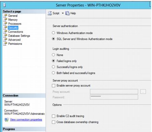 Verifying mixed mode authentication is enabled
