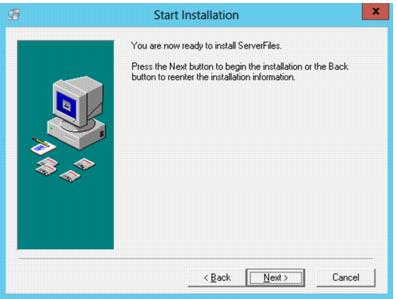 9. You are presented with the following dialog. Click Next to start the installation. The installer creates the Siriusware directory structure and copies the installation files from the SiriusTEMP directory into the \Siriusware\Install directory. It also copies the license file into the \Siriusware\License directory (if you previously selected this option).