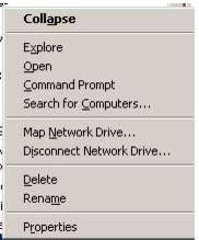 Select Windows Explorer or press Enter to open the File Explorer. From My Network Places, find the Siriusware folder on your server. Right-click on it and you are given an option to map this folder to a drive (Map Network Drive), as shown in the following screen capture: