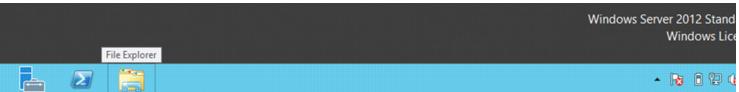 In Windows Server 2012, open the File Explorer by selecting it in the taskbar at the bottom of the screen, as shown in the following screen capture: