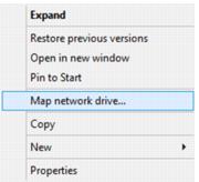 Expand the Network node on the left and locate the Siriusware folder on your server. Right-click on it and you are given an option to map this folder to a drive (Map network drive…), as shown in the following screen capture: