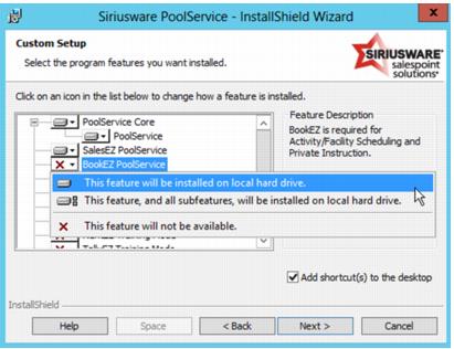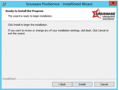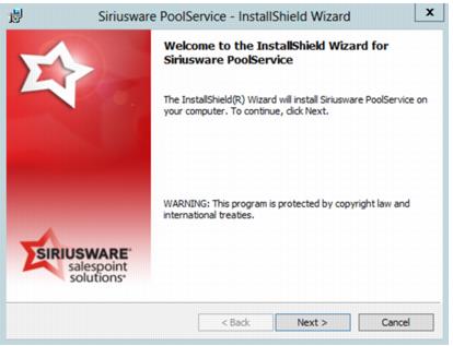 You need administrator privileges on the computer where Pool Service is installed and you need write privileges to the Siriusware\Install directory (the Pool Service installer writes a file named SiteDefaults.INI to the Siriusware\Install directory). Before running this installer, you must have already installed SQL Server and the Server Files installer and you must have already installed Common Files application on the computer where you are installing Pool Services.