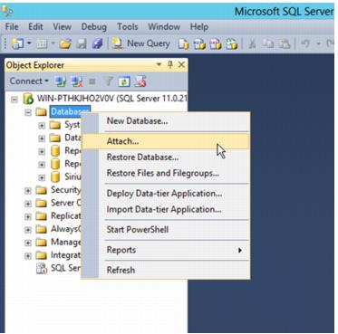 7. The next step is to attach the training database. With the Microsoft SQL Server Management Studio application still running, expand Databases on the left side of the screen.
