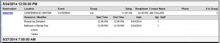 This report lists each reservation within a given date range that is utilizing the selected resource(s). Only reservations entered into our Resource Scheduling module are included.