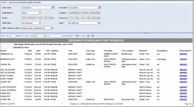 Resource Scheduling Staff Schedule Report