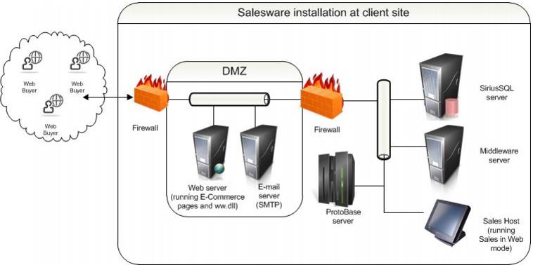 The diagram below shows how E-Commerce web pages can be hosted internally.