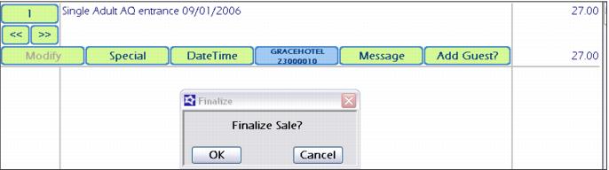 The operator is prompted to finalize the sale if the voucher’s access record template is configured to Finalize Auto Sale in Sales32 (this option is found on the Auto Sales tab within the access record template).