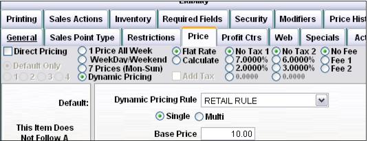 5. Click on the Price tab, select the appropriate pricing method, and enter the price for the item. Select the appropriate tax rate if necessary. Remember to click the Add Tax box if the tax is added to the price of the item (without it checked, the tax is backed-out of the price of the item).
