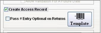 10. Click on the Action tab, check the Create Access Record check box, and click on the Template button.