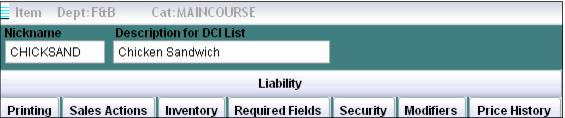 2. Enter a Nickname for the item. The Nickname must be unique within the Category and can be up to ten characters.