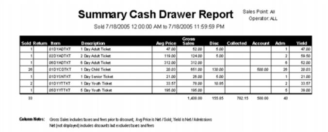 Sample Summary Cash Drawer Report