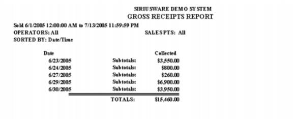 Sample Gross Receipts Report