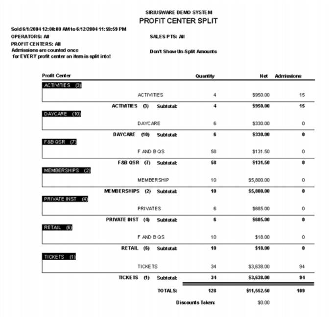 Sample Profit Center Split Report