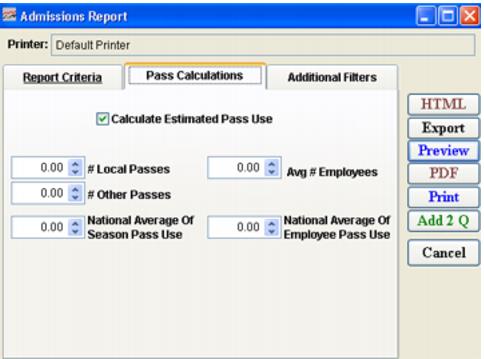 Calculate Estimated Pass Use | Select this to activate the rest of the fields in the tab. |