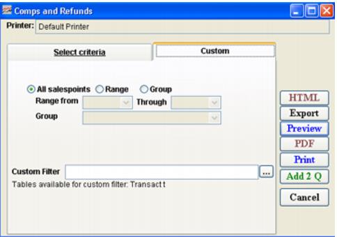 Custom Filter | Allows a custom filter to be entered to further define the output of the report. |