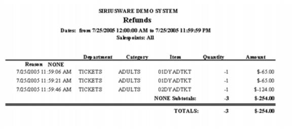 Sample Refunds Report (Detail Report selected)